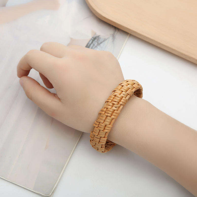 Accessoires de mode pour femmes bracelet main en rotin naturel pour filles bracelets ronds faits main en gros