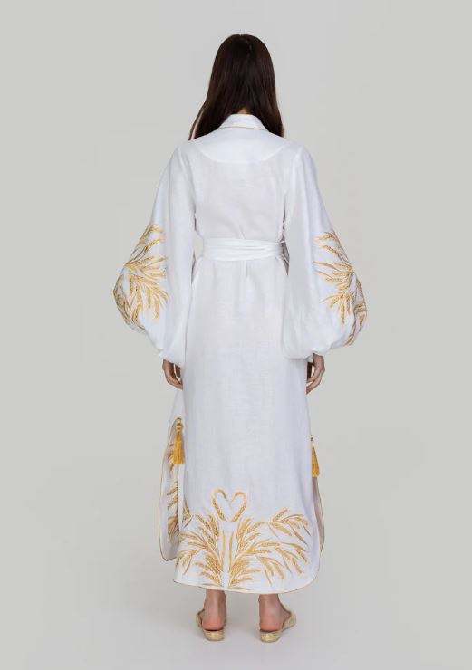 Women 2025 New Exclusive Ukrainian Embroidered Full Balloon Sleeves Ukraine Women High Neck Belted Evening Party Dresses