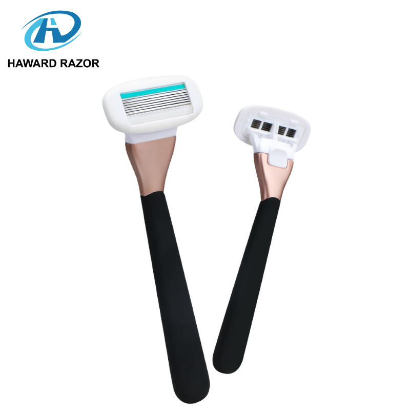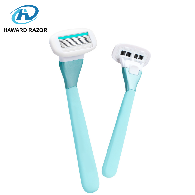 Rasoir pour femmes à 6 lames courbes avec bande lubrifiante extra-large | Poignée ergonomique en métal et silicone, personnalisation multicolore