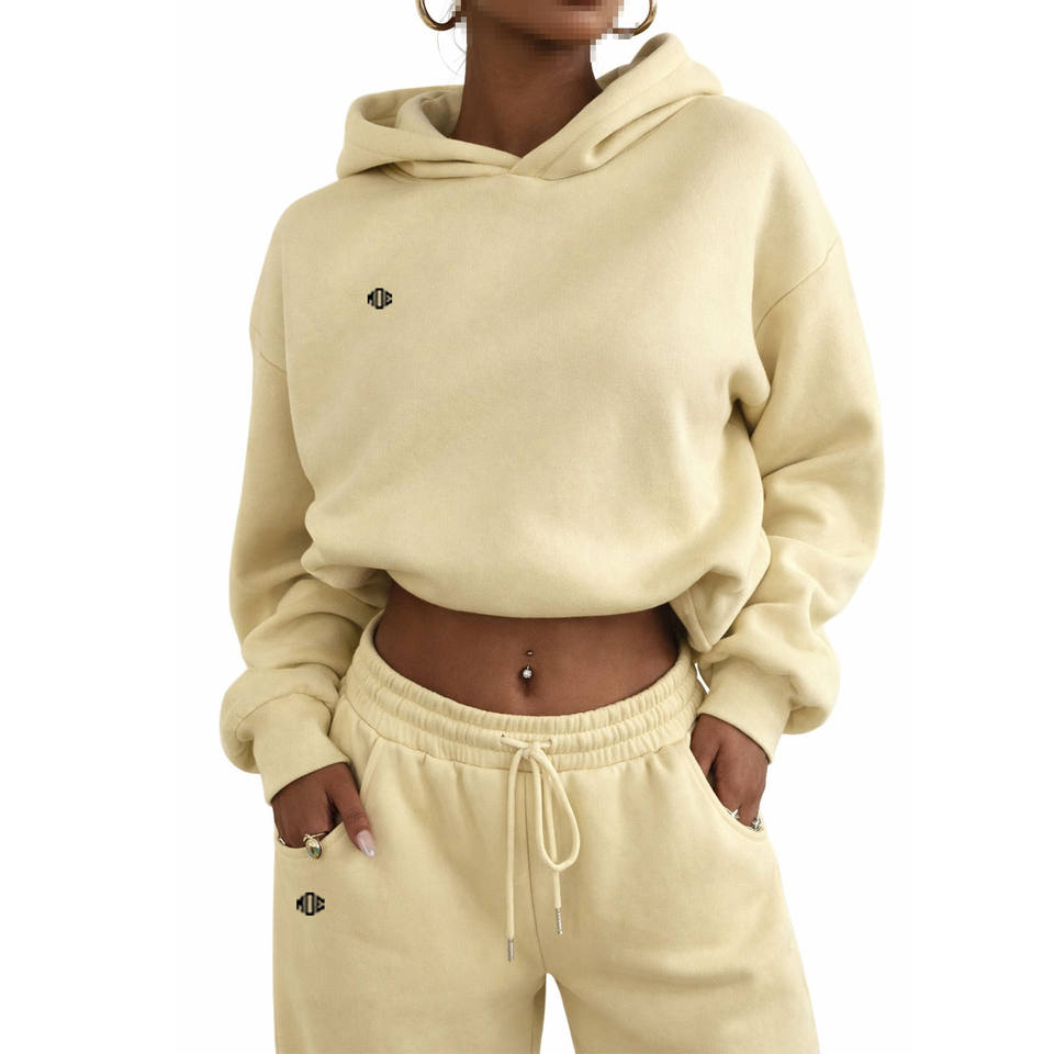 Women Activewear Tracksuit Pullover Hoodie with Drawstring Pants Relaxed Fit Sportswear for Wholesale Buyers