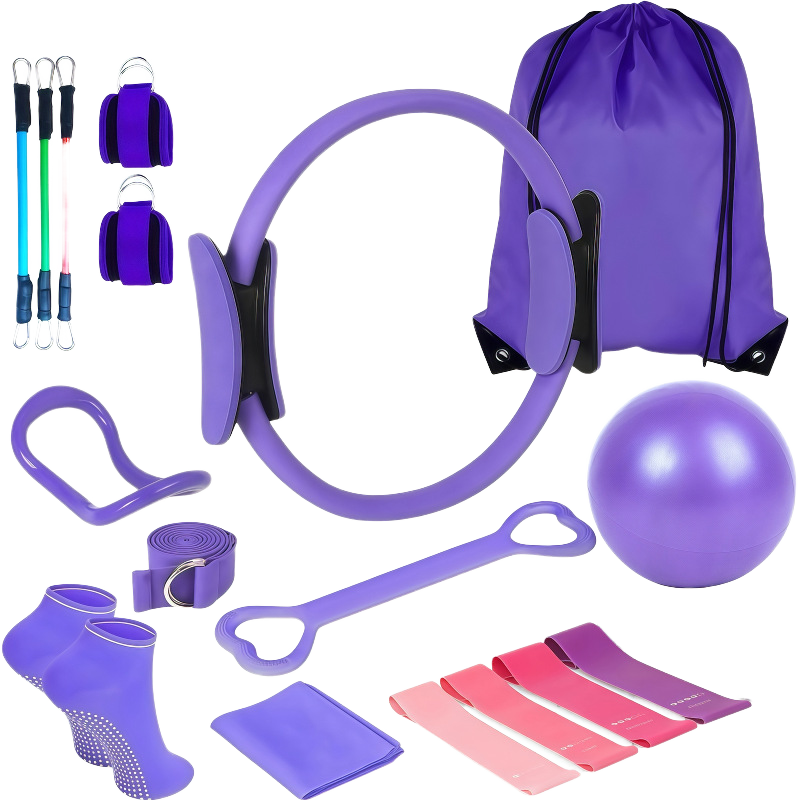 Ensemble d'équipements de Pilates portables réglables en PVC/Polyester pour femmes, 13 accessoires de fitness pour la maison, la gym et le yoga