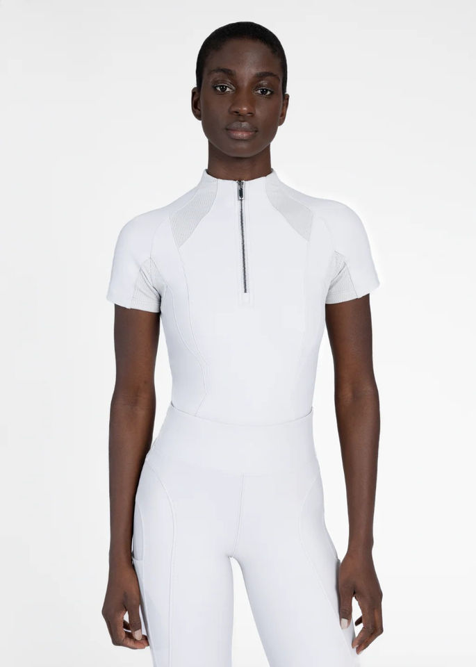 Chemise d'équitation avancée pour femmes, légère, à manches courtes, respirante, en tissu extensible, couche de base pour l'équitation, OEM