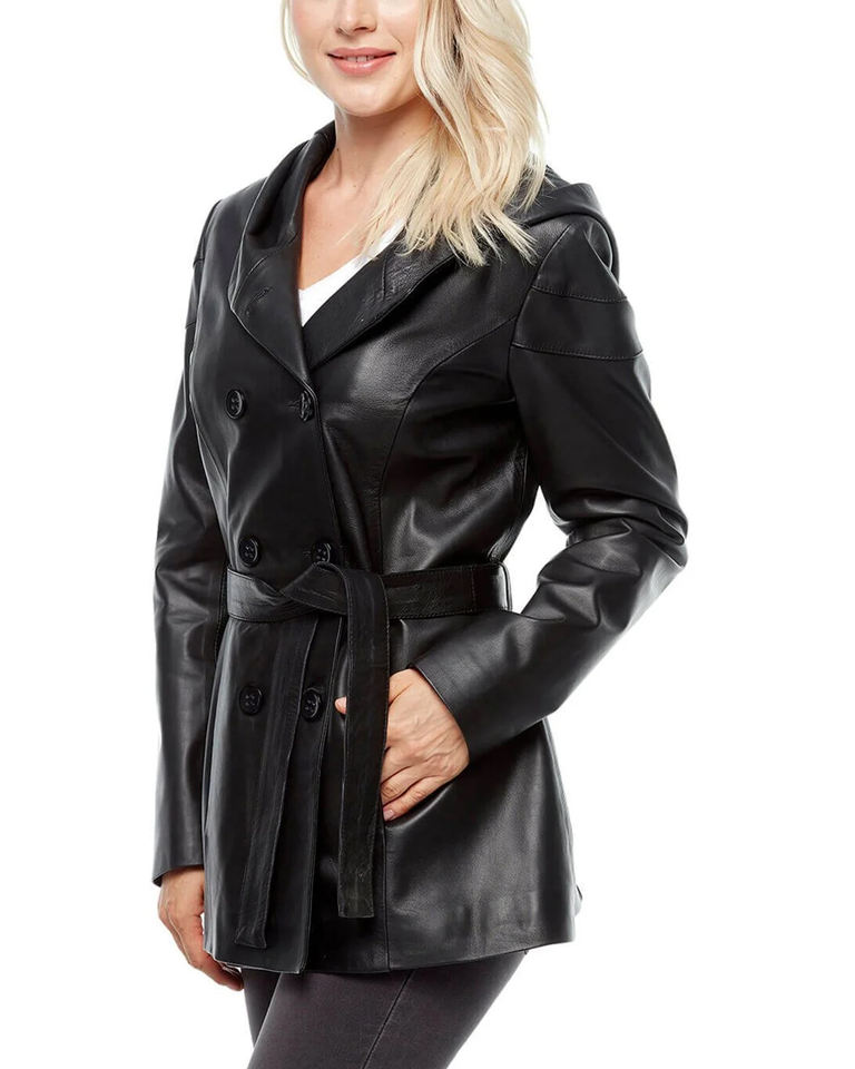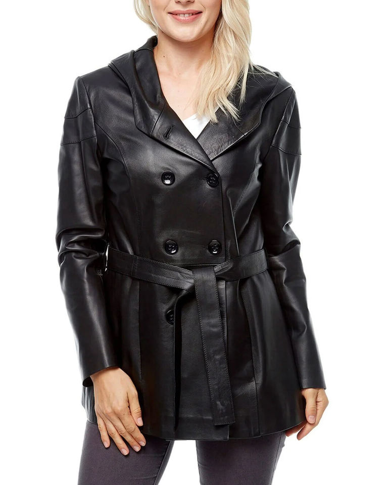 Product name:Women Leather Trench Coat