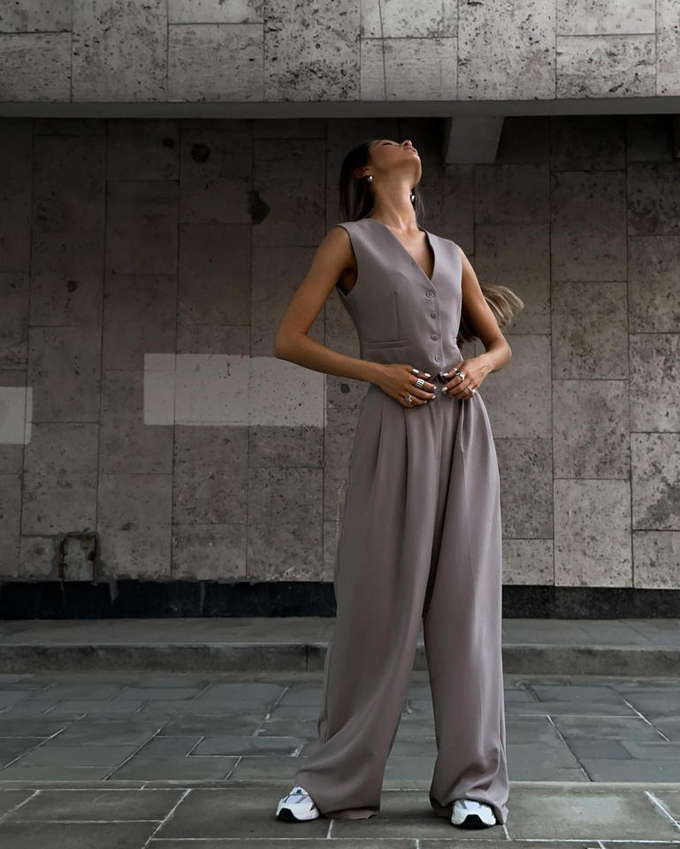 Name:Breasted Vest Wide Foot Pants Two Piece Set