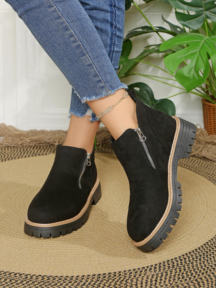 Bottes pour femmes Bout rond en daim Bottes à fermeture éclair latérale Bottes d'hiver Nouveau style rétro britannique Bottes courtes pour femmes