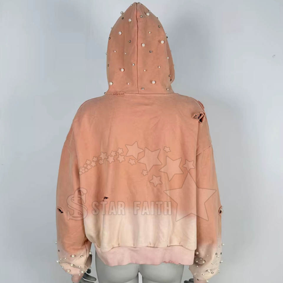 Women Acid Wash Rhinestone Hoodies
