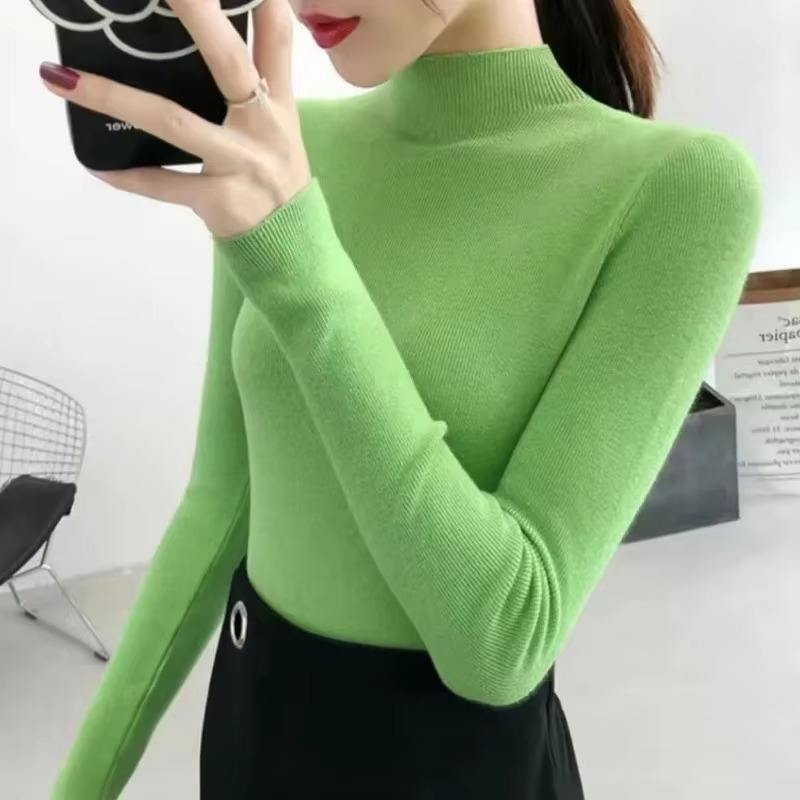 Women Casual Knitting Pullovers 2025 Autumn Winter Turtleneck Sweater Solid Color Warm Front Logo