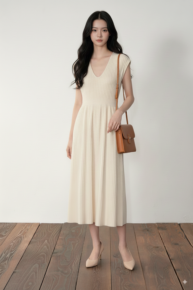 Numéro de Type:V-NECK KNIT MIDI DRESS