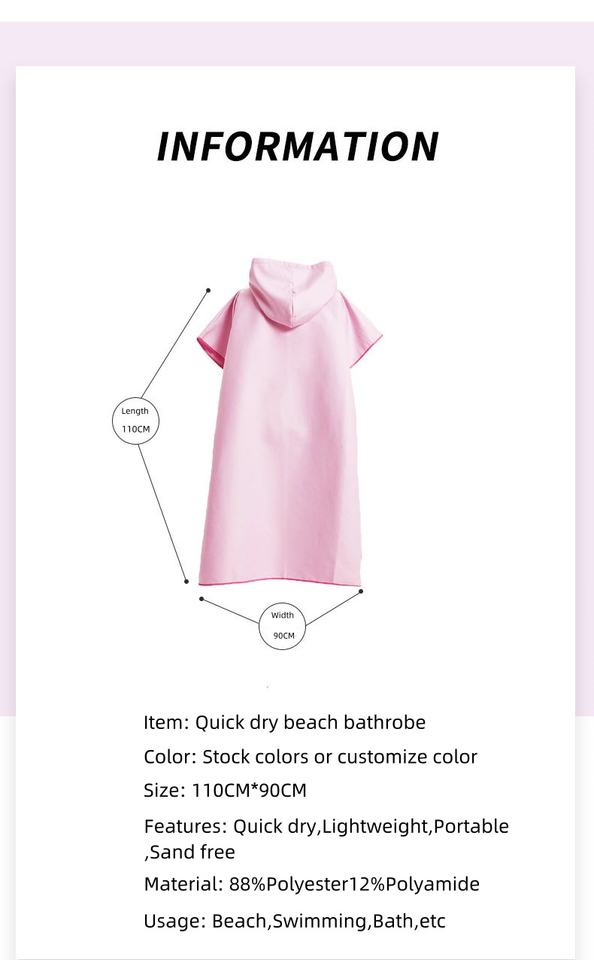 Poncho à langer pour femme avec capuche pour le surf, la natation, la combinaison, compacte et légère.