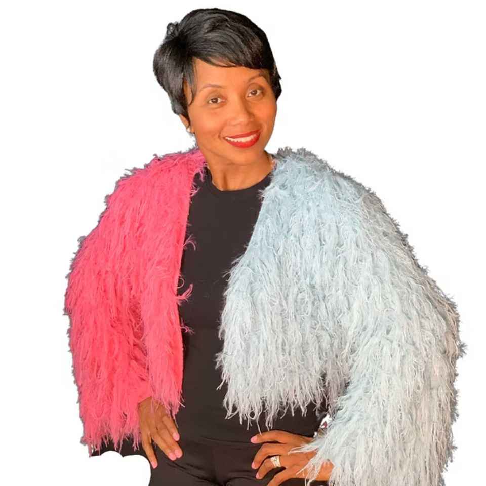 Pull d'hiver pour femme à blocs de couleur avec franges en plumes sur le devant, manches longues, veste tendance, doux et duveteux, haut de boutique de mode pour soirée