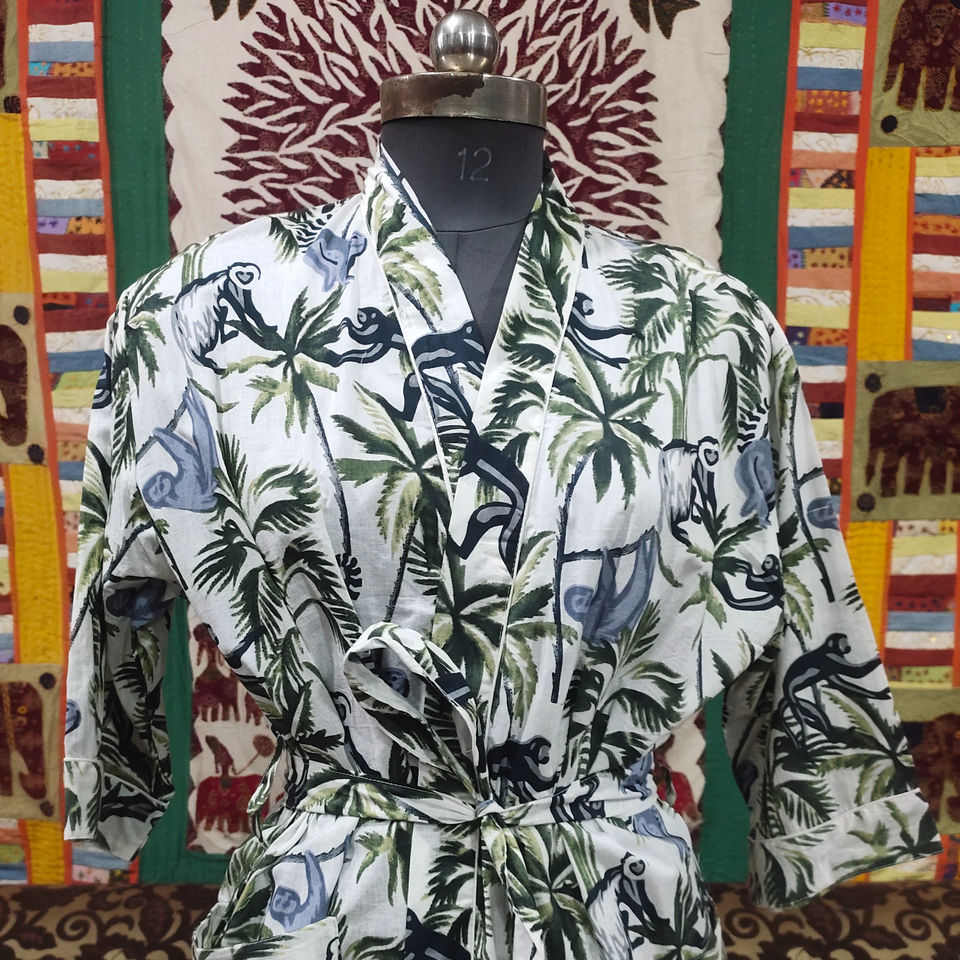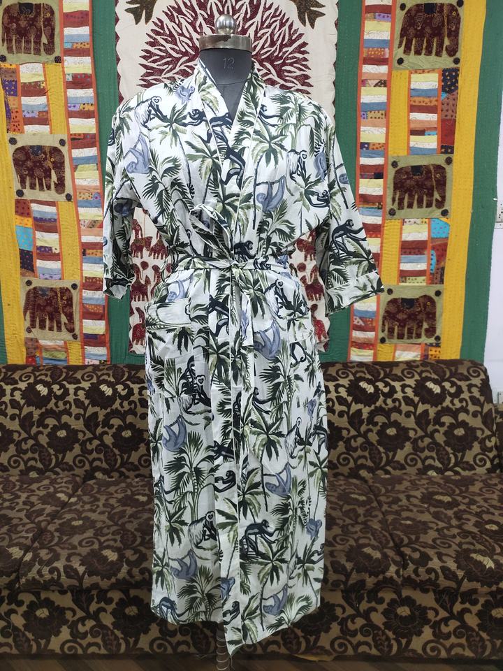 Robe kimono en coton pour femmes, style japonais, imprimé singe, légère, printemps-été, vêtements de nuit, cadeau pour demoiselle d'honneur, ensemble de peignoirs