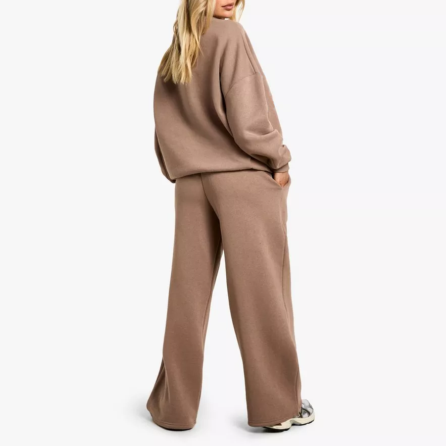 Sweat-shirt surdimensionné à col ras du cou pour femmes Jogger à jambe droite Survêtement en coton polaire à broderie sur mesure pour femme Survêtement