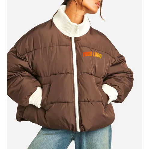 Veste courte matelassée pour femmes, logo personnalisé, vente en gros, manteau d'hiver court, marque de mode, service OEM, vêtements d'extérieur élégants et chauds