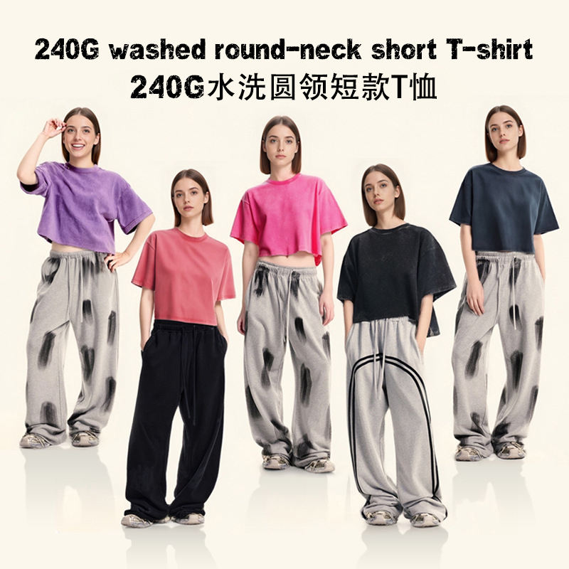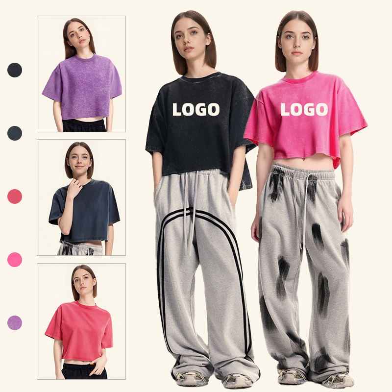 T-shirts courts pour femmes, délavés à l'acide, à manches courtes, amples en coton, col rond vintage, basiques et décontractés