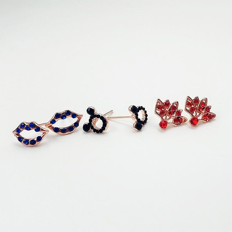 Produit:Or papillon lèvre coeur lettre oreille goujons strass boucle d'oreille