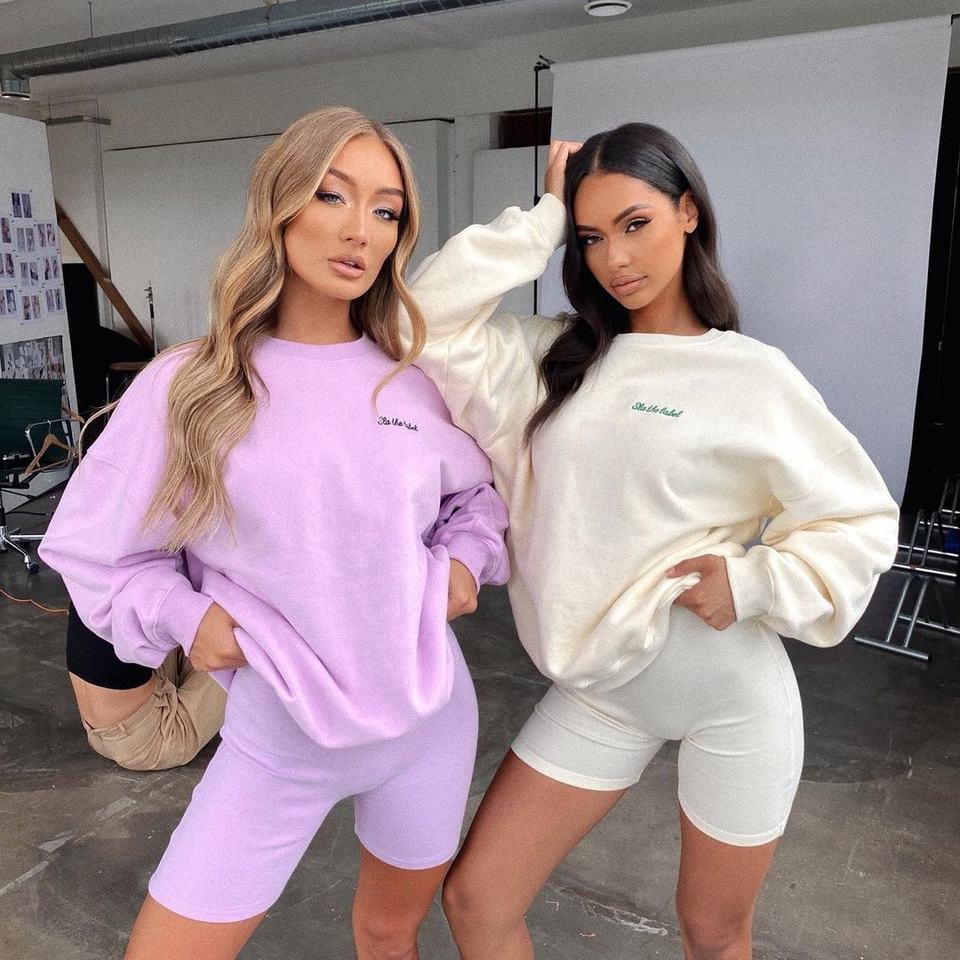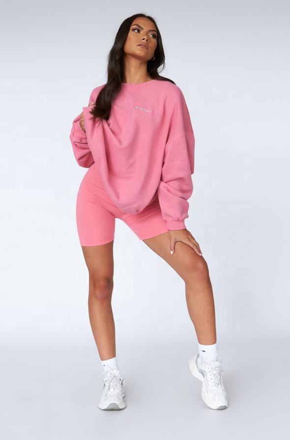 Sweat-shirt unisexe à col rond en molleton français 100% coton rose uni avec logo brodé personnalisé pour femmes