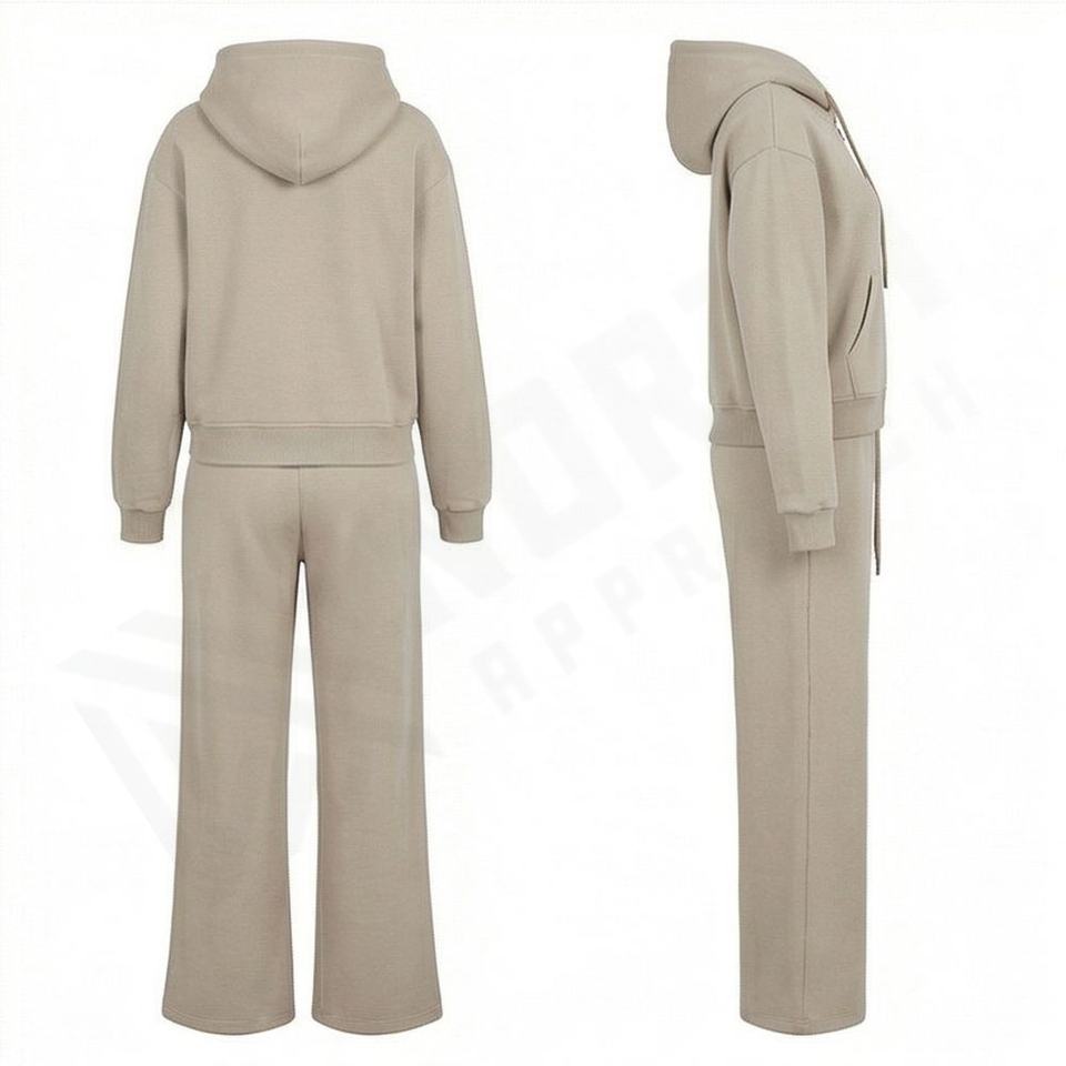 Women Custom Logo Casual Solid Fashionable Oversized Sweatsuits Embroidery Sport Pants Zipper Hooded Long Sleeved Top Two Piece