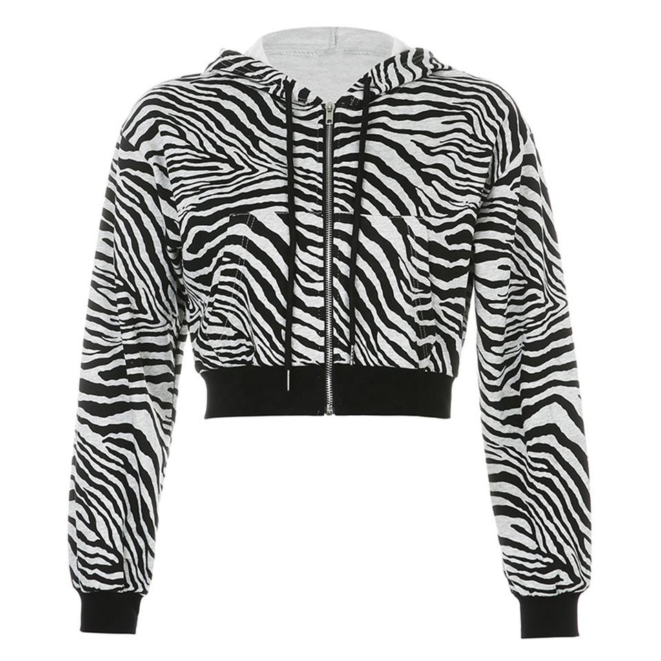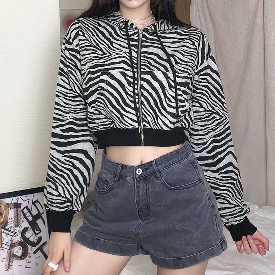 Femmes Personnalisé Imprimé Crop Top À Capuche Zip Up Manches Longues Sweat À Capuche Zipper up Recadrée Hoodie