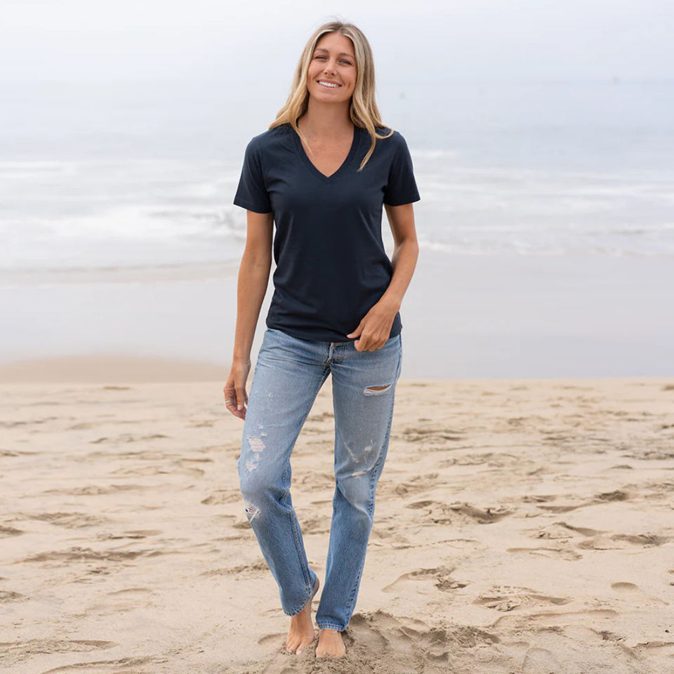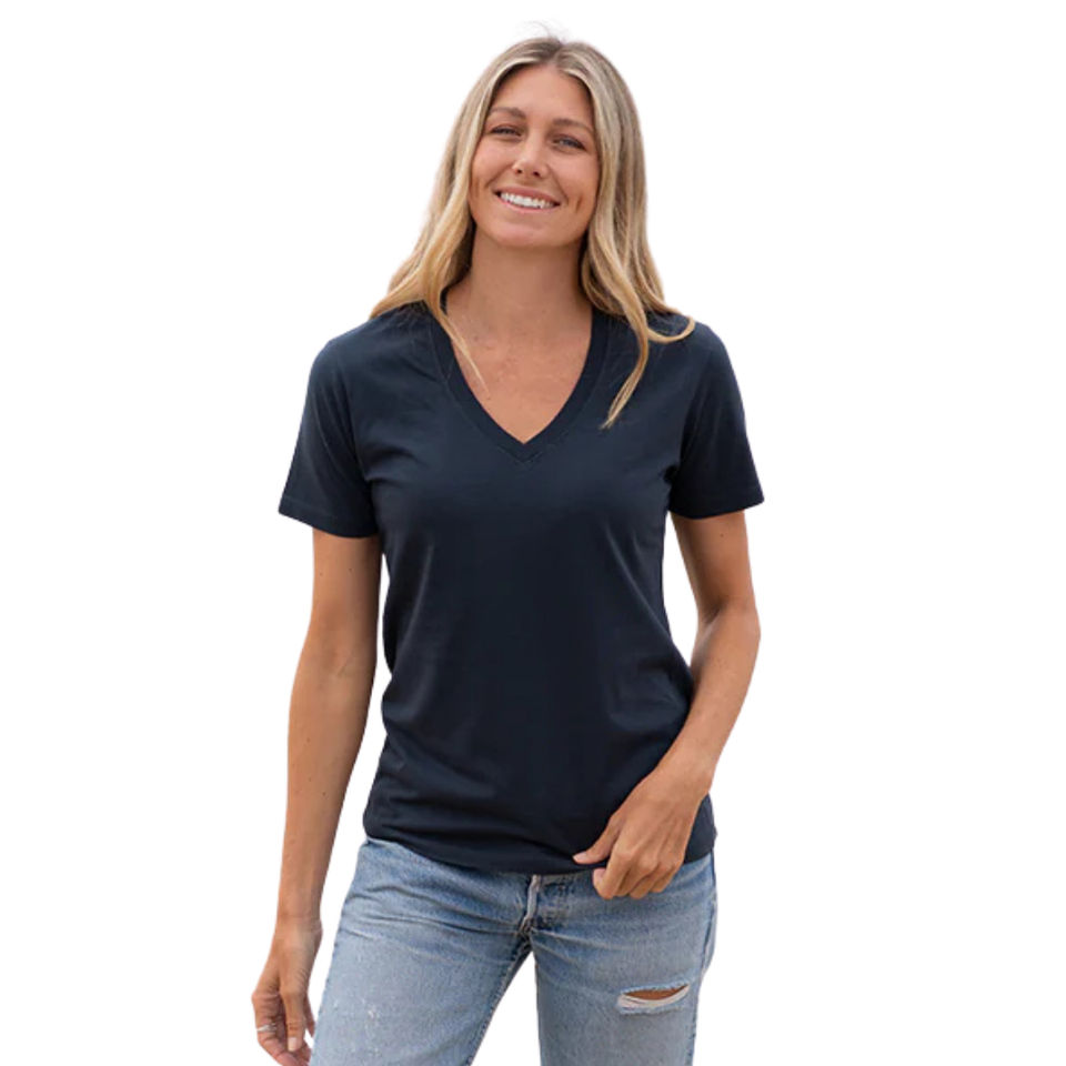 T-shirts à col en V pour femmes, couleurs personnalisées, manches courtes, polyester/coton, toile écologique, t-shirts à col en V de qualité supérieure, doux et respirants