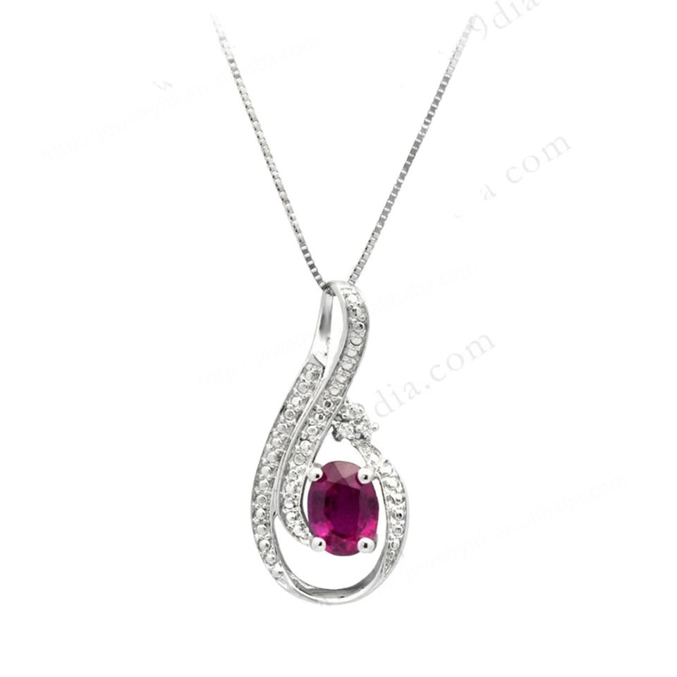 Collier pendentif en argent sterling 925 pour femme, avec rubis naturel ovale et pierres latérales en CZ de qualité AA/AAA - Cadeau idéal