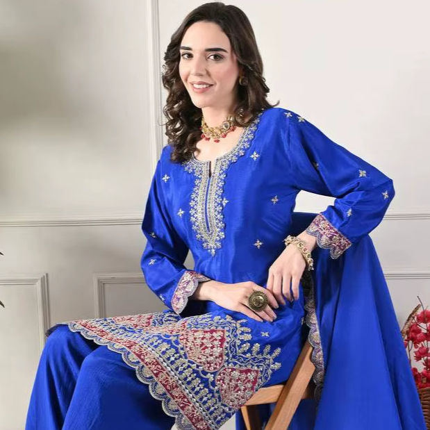 Chinos avec broderie Dori 3 mm et travail de sequinsMatériel