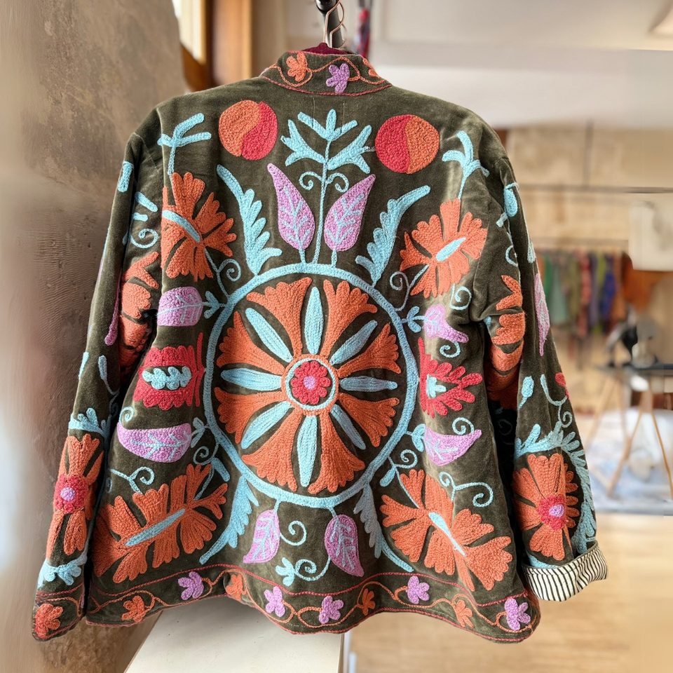Veste matelassée en toile pour femme, automne-hiver, brodée, boutonnée, manches longues, motif floral Suzani, coton écologique
