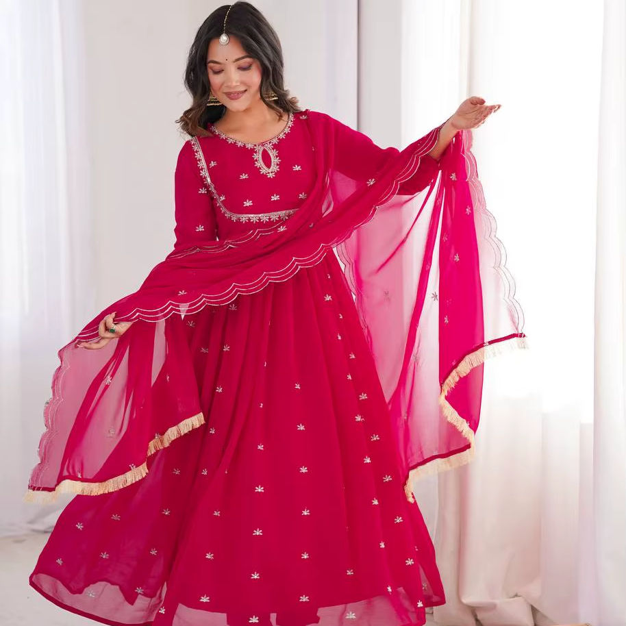 Kurta ethnique brodée pour femmes avec pantalon et dupatta
