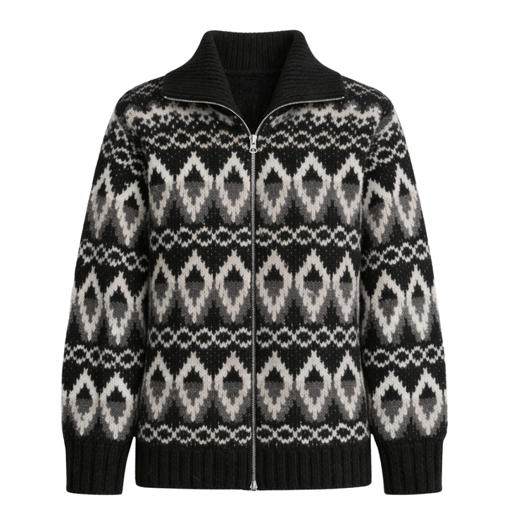 Veste en tricot Fairisle pour femme, fermeture éclair sur le devant, à motifs, manches longues, confortable, style cardigan, vêtement d'extérieur pour l'hiver, idéal pour les journées froides