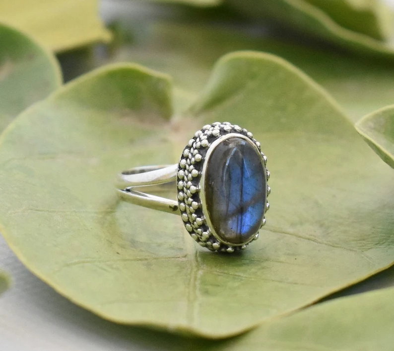 Women Fashion Rings Solid 925 Sterling Silver Jewelry Natural Labradorite Gemstone With 925 Stamp For Partywear Gifts Jewelry