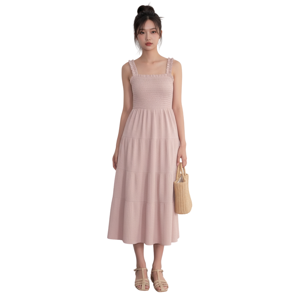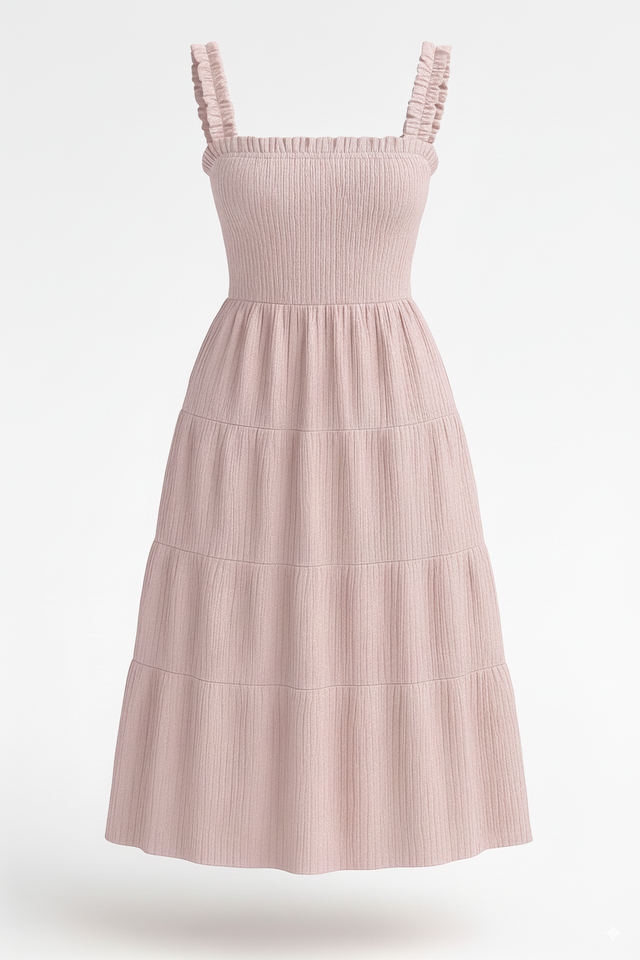 Model Number:SMOCKED TIERED MIDI DRESS