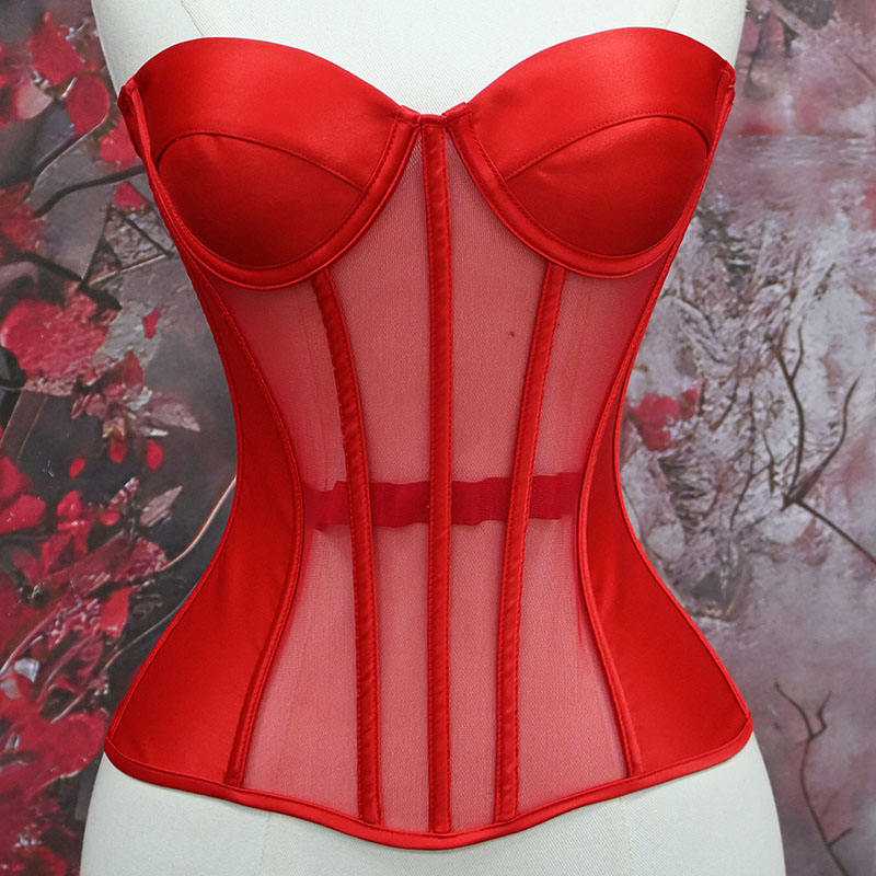 Ensemble de lingerie sculptante sans couture pour femme, effet gainant, en jersey respirant, avec corset transparent à baleines et design sans bretelles à lacets fantaisie