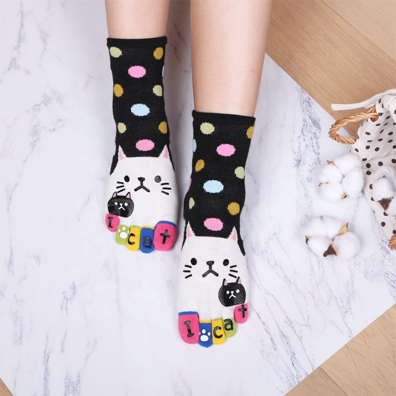 Women Girls Dot Toe Socks Five Finger Cotton Casual Cat Socks