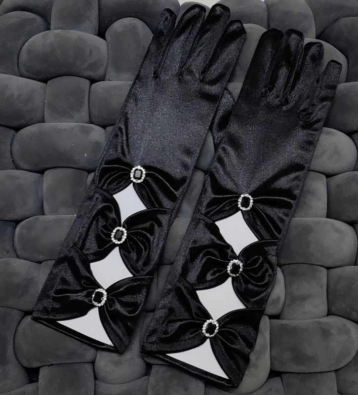 Women Great Gatsby Bow With Rhinestones 1920s Stretchy Elbow Gloves