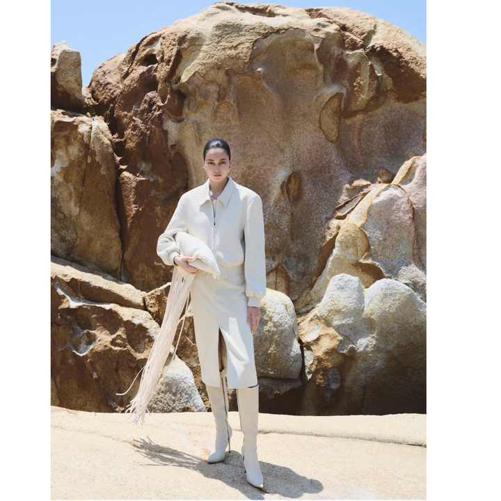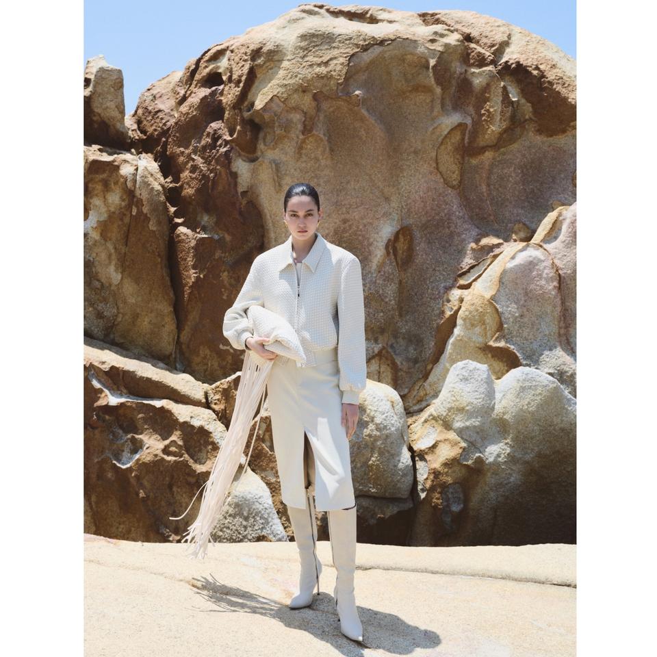 Women High Fashion Women's Skirts Elegant Animal-free IKAT CAMOUFLAGE MIDI SKIRT Vegan Leather Ivory Color Long Skirts for Women