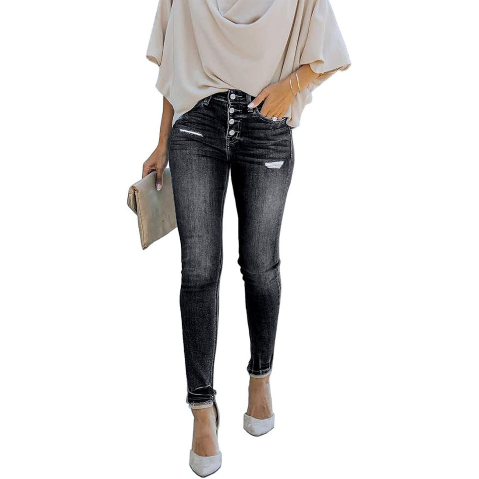 Women High Waist Black Denim Jeans Slim Fit Button Front Stretch Skinny Pants Casual Stylish Jeans for Ladies