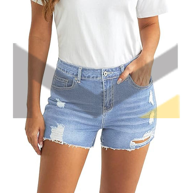 Short en denim extensible à taille haute pour femmes, ourlet brut déchiré, short d'été décontracté à découpes