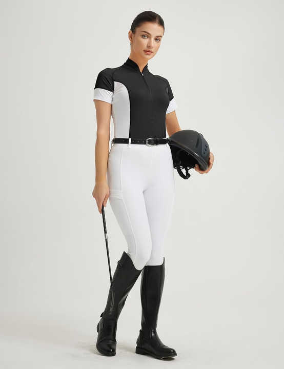 T-shirts d'équitation pour femmes à séchage rapide Performance Top Pocket Silicone Printing Outdoor Equestrian Jodhpur & Breeches