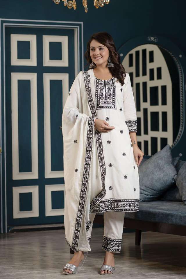 Product Name:Cotton Kutch Embroidery With Mirror Work Kurta Palazzo And Dupatta