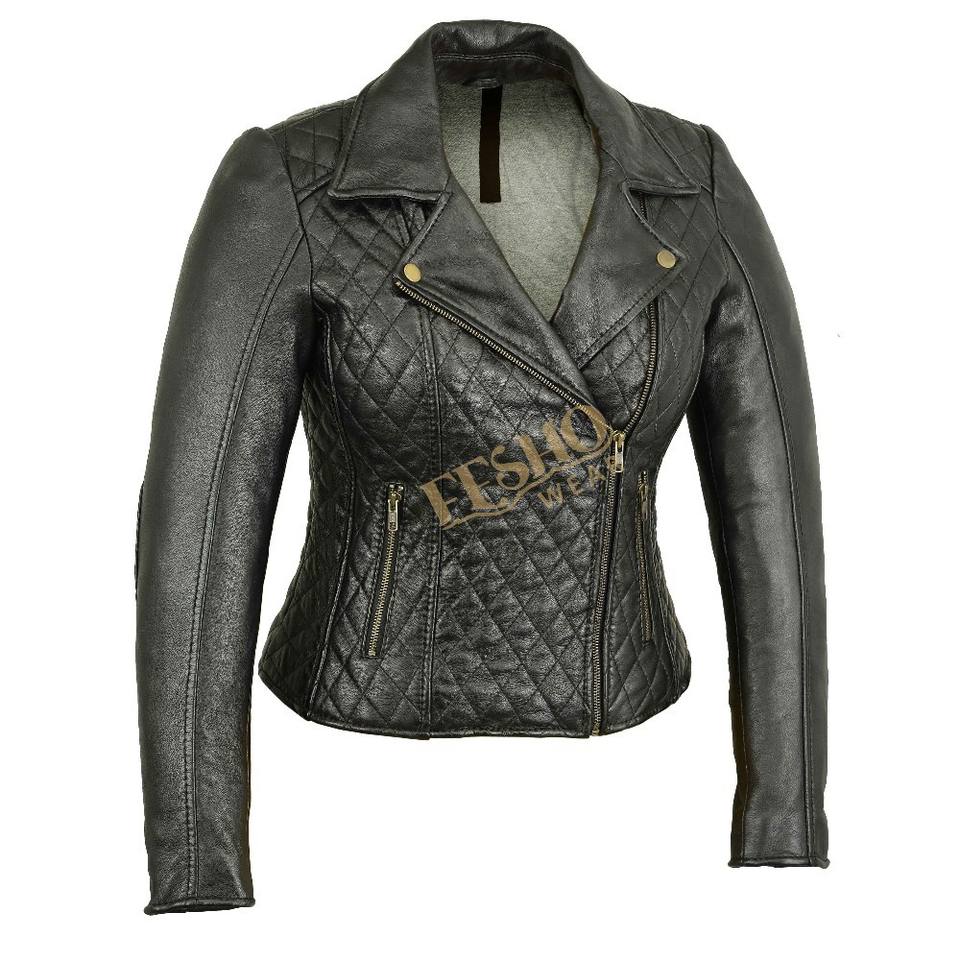 Veste en cuir véritable:Femmes Veste en cuir style matelassé diamant