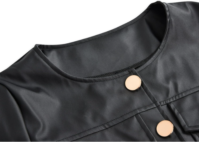 Vestes en cuir pour femmes Bouton Front Ladies Motor Biker Outwear Basic Short Slim Coat