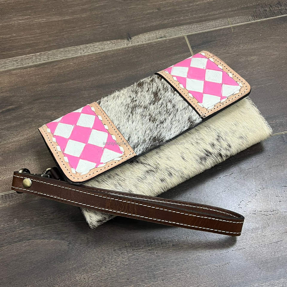 Product name:Hand Tooled Cowhide Leather Wristlet Clutch