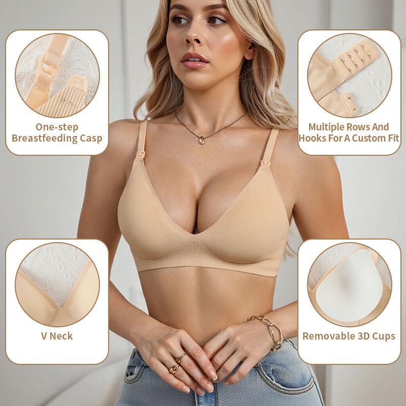 Women Maternity Nursing Bra Push-Up Breathable Soft Support Wireless Seamless Postpartum Breastfeeding Bra