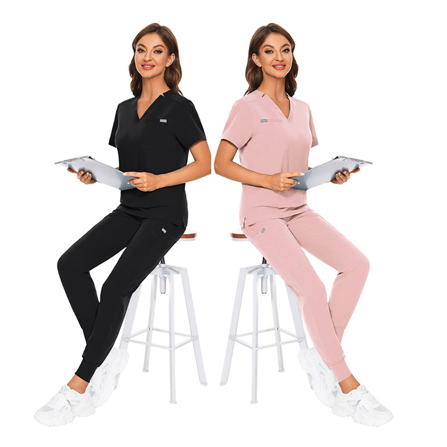 Women Men Custom Logo Scrub Uniform Set Nurse Scrubs Uniforms Sets Unisex Wholesale Polyester Spandex Fashionable Nursing