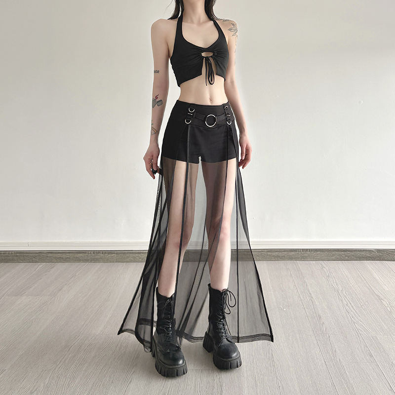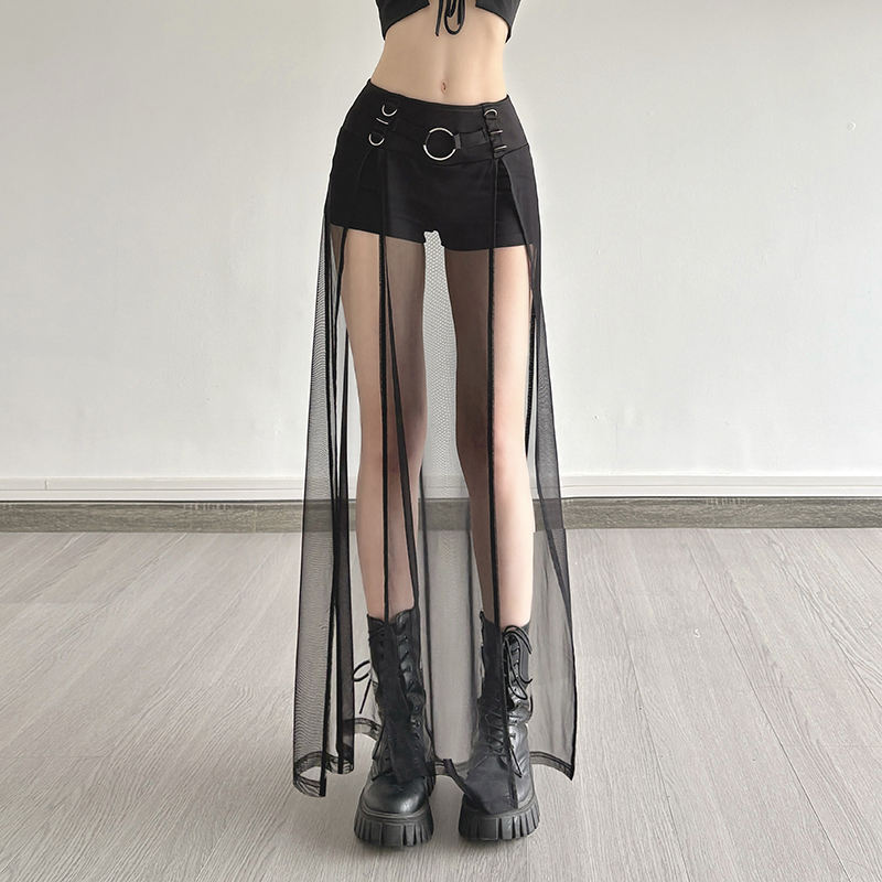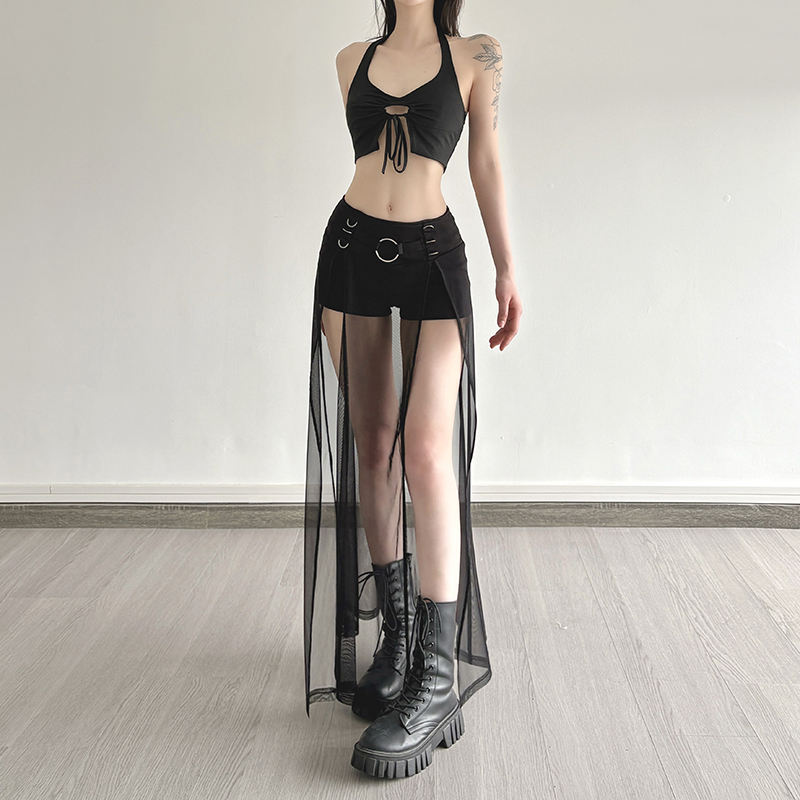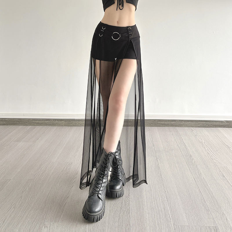 Jupe courte en maille patchwork pour femmes, détail boucle métallique, style Y2K, mode décontractée, jupe pour femmes