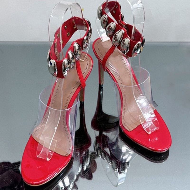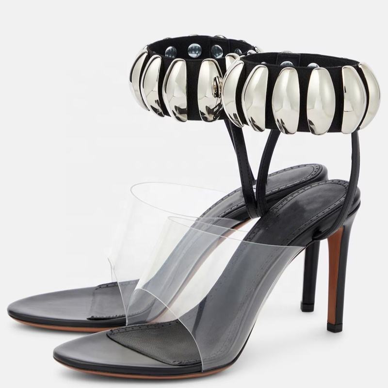 Sandales à brides métalliques pour femmes, en PVC, à talons hauts et fins, confortables, pour l'été