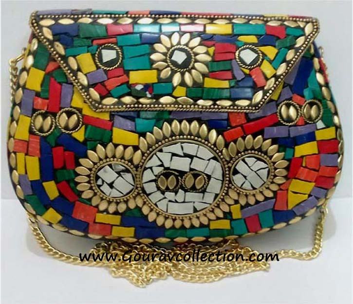 Product Name:Mosaic Work Women Metal Purses