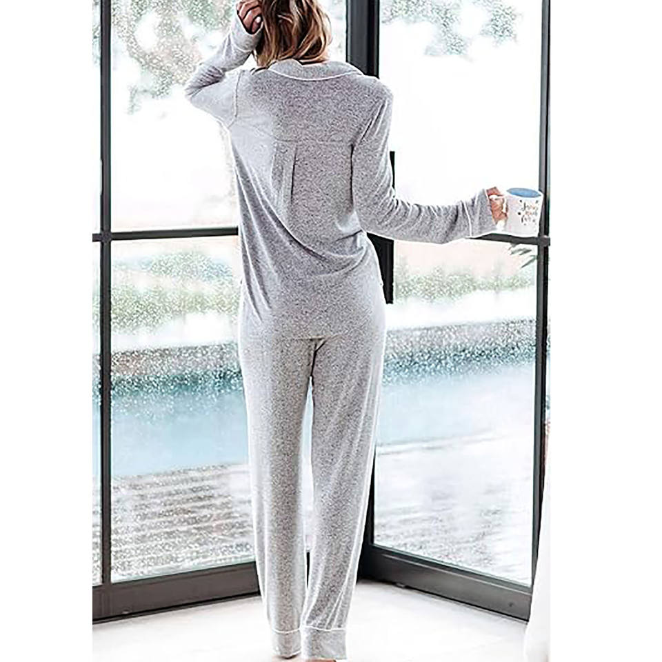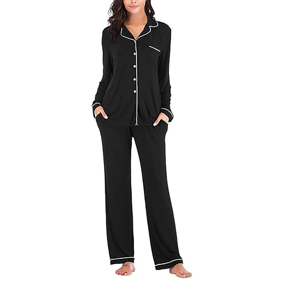Ensemble de pyjama en modal pour femmes, vêtements de nuit boutonnés à manches longues, vêtements de détente souples et élégants pour le printemps et l'automne