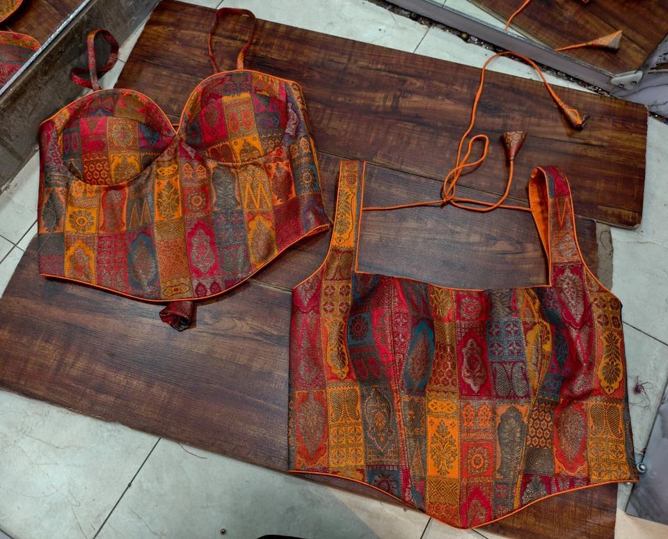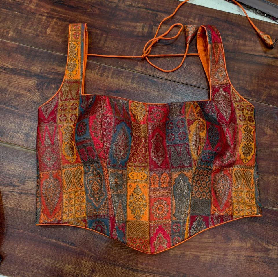 Chemisier corset en brocart Banarasi multicolore pour femmes, tissé, vêtements traditionnels de mariée et de mariage