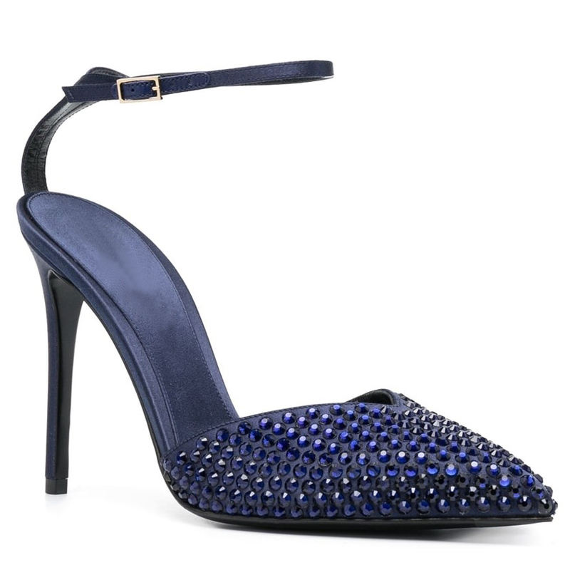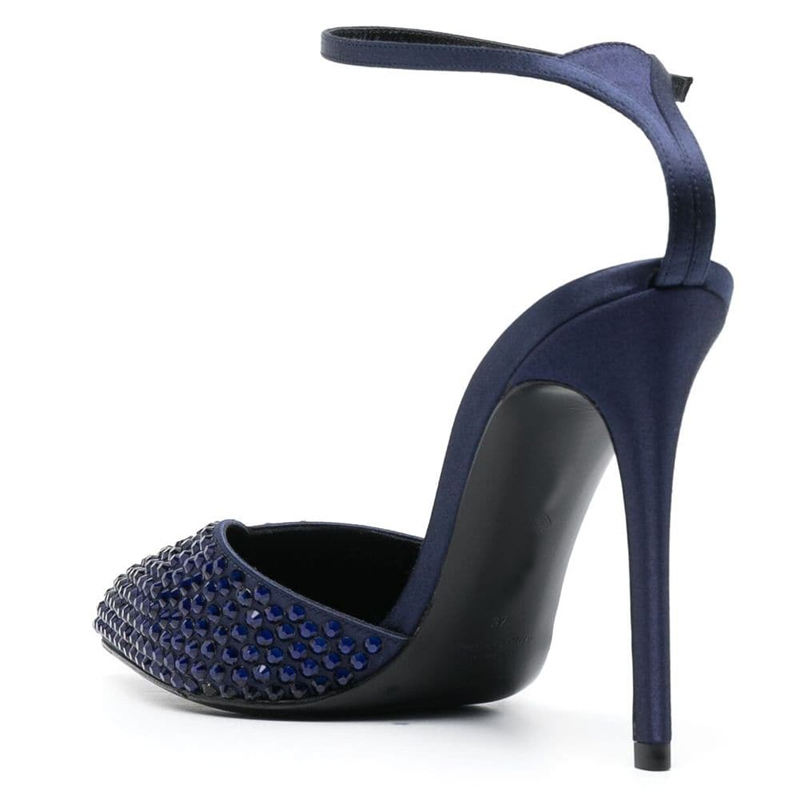 Chaussures à talons aiguilles en satin bleu marine pour femmes, bout pointu, ornées de cristaux, luxe léger, élégantes, pour mariage, gala, soirée, chaussures haut de gamme, vente en gros