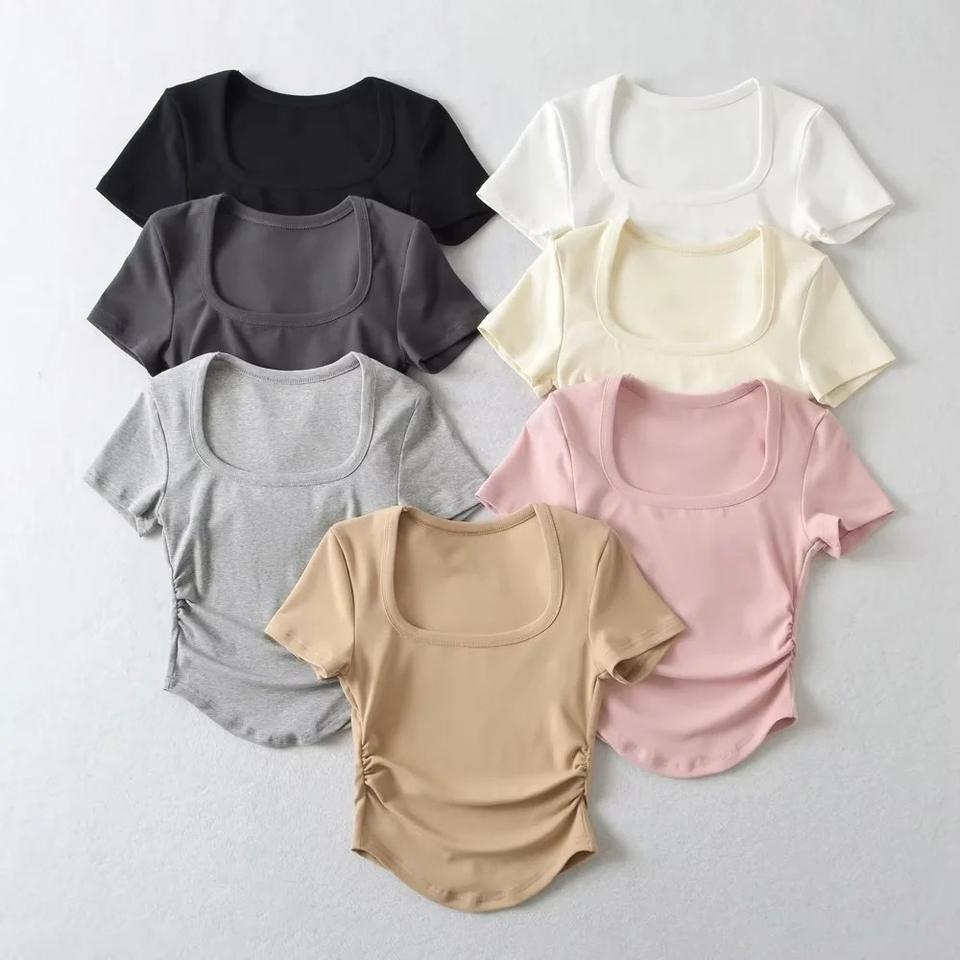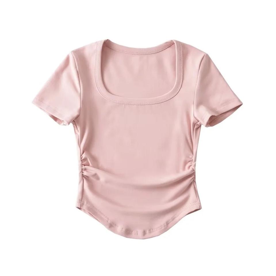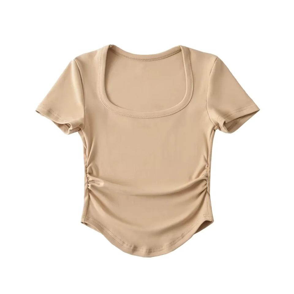 Keywords:Women New Hem Pleat High Waist Running T-Shirt